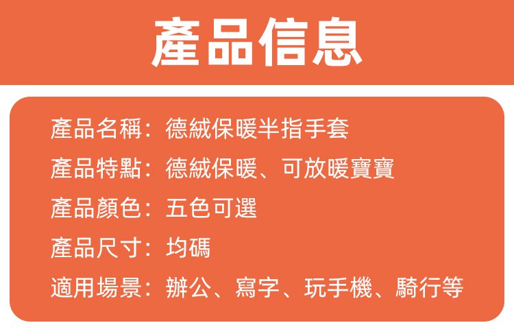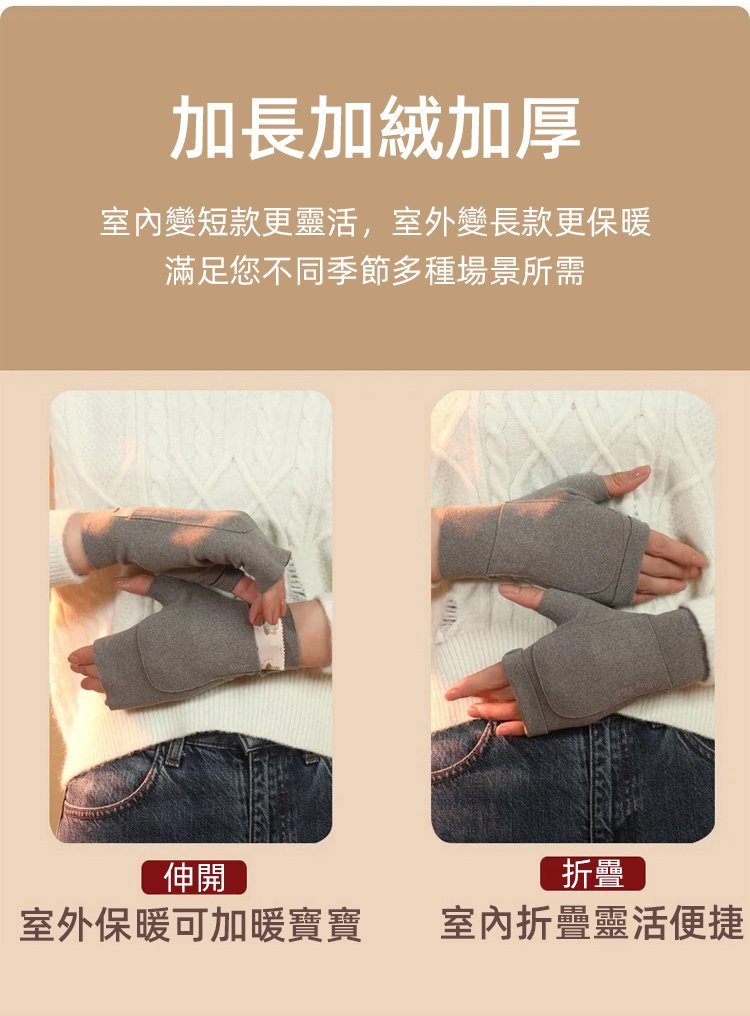 自發性熱德絨口袋半指保暖手套